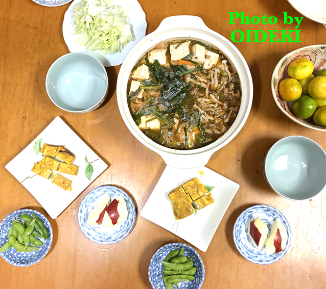 夕飯ですよ|「鍋OK😤」 公開済み: 2025年9月24日更新: 2025年9月24日作成者: nasiカテゴリー: 貯金・節約, 食物タグ: OIDEKI, 節約ごはん 夕飯ですよ ●辛い鍋(冷凍牡蠣・きのこ・野菜・手羽元・豆腐) ●卵焼き ●枝豆 ●りんご ●キャベツ ●みかん 朝の🐶散歩で「え〜〜肌寒い💦」うれし〜〜〜🥶5:00頃です⏰ なので私の中で「鍋OK」になりました^^ 夏の間にビニール袋に少しづつ集められ冷凍された 半端に残ったあまり野菜たち・・・一気に鍋に投入し うゎ〜〜〜冷凍庫はさっぱり気分^^ 旦那さんに呆れられるといけないので 卵焼きだけ焼きました^^ ランキングに参加しています、ポチッと押していただけると大喜びします。 関連記事 荷物が届いたよ♪ 金曜日は平泳ぎ♪ 公開済み: 2019年7月13日更新: 2019年7月13日作成者: nasiカテゴリー: 貯金・節約, 食物タグ: OIDEKI, スイミング, 競泳用水着, 節約ごはん 夕飯ですよ|次男とデート 夕飯ですよ 公開済み: 2022年6月24日更新: 2022年6月24日作成者: nasiカテゴリー: 食物タグ: OIDEKI, 節約ごはん 夕飯ですよ|暑さで怪現象 夕飯ですよ 公開済み: 2023年8月1日更新: 2023年8月8日作成者: nasiカテゴリー: 植物, 身体, 食物タグ: OIDEKI, 節約ごはん