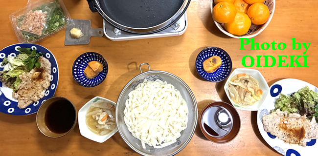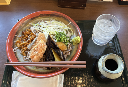 揚げサーモン/茄子の冷たいなめこおろし蕎麦